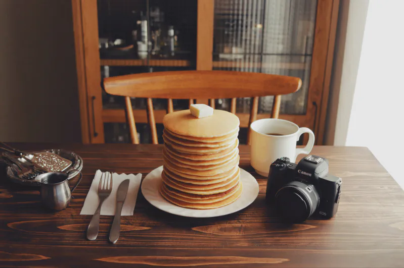 喫茶トラノコクさんのホットケーキ動画でミラーレスカメラ Canon EOS Ki...